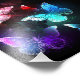 Three luminous, red, purple, green, textured, night butterflies on black luminous background.