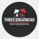 A round sticker with the logo of Three horsemen record label and publishing.