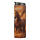 Three majestic horses, two brown and one white, stand proudly in a golden field of tall grass, bathed in the warm glow of a vibrant sunset. A rustic wooden fence and an old barn complete this idyllic country scene, evoking a timeless sense of peace and natural beauty.