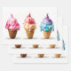three ice cream cones with purple and blue colours wrapping paper sheet