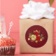 The composition of two artistically painted red roses and one golden rose, decorated with gold, jewel leaves on textured background.