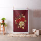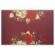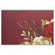 The composition of two artistically painted red roses and one golden rose, decorated with gold, jewel leaves on textured background.