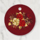 The composition of two artistically painted red roses and one golden rose, decorated with gold, jewel leaves on textured background.