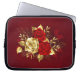 The composition of two artistically painted red roses and one golden rose, decorated with gold, jewel leaves on textured background.