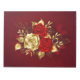 The composition of two artistically painted red roses and one golden rose, decorated with gold, jewel leaves on textured background.