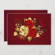 The composition of two artistically painted red roses and one golden rose, decorated with gold, jewel leaves on textured background.