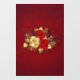 The composition of two artistically painted red roses and one golden rose, decorated with gold, jewel leaves on textured background.