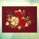 The composition of two artistically painted red roses and one golden rose, decorated with gold, jewel leaves on textured background.