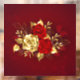 The composition of two artistically painted red roses and one golden rose, decorated with gold, jewel leaves on textured background.