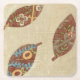 Three Leaves on Linen Texture Background Square Paper Coaster