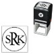 Stylish self inking rubber stamp with custom three letter monogram with a dotted circle around the letters. Personalize the letters to suit your needs. Great for every day use and special occasions.