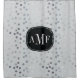 Add a little bit of chic and sparkle to your bathroom with this cool grey shower curtain featuring a scatter of faux silver glitter dots and a modern, personalized three letter monogram.