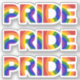 Celebrate your LGBTQ pride with the word "PRIDE" in bold rainbow coloured letters on three stickers. Other sizes available in the sidebar.