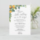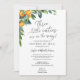 A baby shower by mail invitation is perfect for those that live a long distance from loved ones, but still want to shower the parents to be with love and gifts to prepare her for baby's arrival. This long distance shower by mail invitation features greenery border with orange clementines with the request poem "