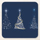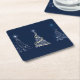 Three Modern Art Christmas Trees on Blue Square Paper Coaster