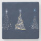 Three Modern Art Christmas Trees on Blue Stone Coaster