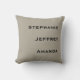 This simple, minimalist square throw pillow, with room for three names, is a wonderful gift for a new home or housewarming party - or for yourself, of course! Great gift for new parents or grandparents. It is greige and black, but easy to change colours. Back is solid greige. All Rights Reserved © 2024 Alan & Marcia Socolik