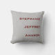 This simple, minimalist square throw pillow, with room for three names, is a wonderful gift for a new home or housewarming party - or for yourself, of course! Great gift for new parents or grandparents. It is grey and burgundy, but easy to change colours. Back is solid grey. All Rights Reserved © 2024 Alan & Marcia Socolik
