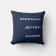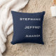 This simple, minimalist square throw pillow, with room for three names, is a wonderful gift for a new home or housewarming party - or for yourself, of course! Great gift for new parents or grandparents. It is navy blue and white, but easy to change colours. Back is solid navy blue. All Rights Reserved © 2024 Alan & Marcia Socolik