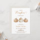 Pumpkin themed baby shower invitation in natural tones featuring three pumpkins, two being plaid and one with a floral arrangement. This little pumpkin baby shower invitation is ideal for an autumn or fall baby shower.