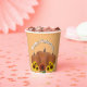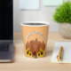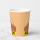These paper cups feature cutout orange and yellow sunflowers and a cutout pumpkin on a light orange background. A black cat with crossed paws is featured in a photo cutout. "Happy Halloween" is written across the top. You can customize these with your own message. You can also replace the photo of the pumpkin and the sunflowers with your own cutout photos if desired. If you need help customizing, please contact me.