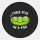 Three Peas In A D Cute Kawaii Funny Classic Round Sticker