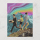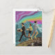 Three people on the mountain ridge in a retro style surreal AI generated art
