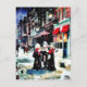 Three persons standing on a street singing christm holiday postcard