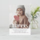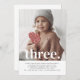 A simple Third Birthday invitation featuring your own photo and the words 'three.' over the top.