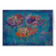 This greeting card features three beautiful poppies collaged onto a blue and lavender background. It's sure to brighten anyone's day. The card is blank inside.