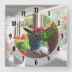 Three Pots of Geraniums on Windowsill Square Wall Clock