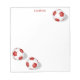 This soccer themed notepad features 3 tiny red and white soccer balls that appear to have stopped rolling right on the notepad - font style is for a girl but can be personalized for a boy - personalize with the athlete's name - by katz_d_zynes