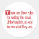 There are three rules to writing a novel; unfortunately no one knows what they are. Great saying in an elegant typeface. Amuse your friends and fellow writers with this item.