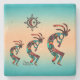 Protect Your Table with this Unique "One of a Kind" Southwest Kokopelli Coaster! It Features Three Southwest Kokopelli Playing the Flute and Dancing Under the Sun on a Turquoise and Sunset Background!