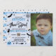 These fun and stylish invitations are perfect for anyone celebrating a 3rd birthday this Halloween. The design features everything spooky from a black cat with flying bats to a spider's cobweb, ghosts, a witches broomstick, skull & bone, magic glass ball and a jack-o-lantern pumpkin all in black, white and shades of blue colours. The template photo and wording is easy to personalize and your party guests will be in for a scare when they receive these invites in the mail!