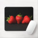 Three Strawberries On Black - Three red strawberries in a horizontal row photographed against a simple black background.