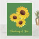 Three Sunflowers Design Blank Greeting Card with customizable background colour and front text. Write your own message inside.