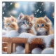 Three adorable tabby kittens in the snow. Two orange tabby kitties and a grey tabby cat in the middle. This ceramic tile makes a great Christmas gift for any cat lover.