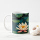 Three pink and white waterlilies and pads in an art nouveau style create a beautiful mug that's perfect for anyone who loves flowers and nature.