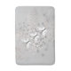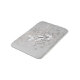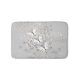 Bath mat with my pretty vector design of three white and black butterflies flying over airy bubbles of grey and white with touches of peach, on a grey background.