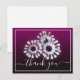 Stunning close-up photograph of three white osteospermum daisies against a purple gradient background. The flowers cover the front of this blank floral postcard which can be used as a thank you card, a birthday card, or any other card of your choice. Customize it with your text and/or pictures to make it one-of-a-kind!