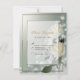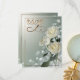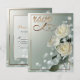 A beautiful and simple matching wedding RSVP card featuring three white roses on a dreamy green background. Customize with your wedding details.