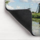 Mousepad with three windmills along a canal with boats and reeds under a blue sky with puffy clouds creating a peaceful scene in the dutch countryside of Leidschendam, the Netherlands.