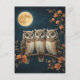 Three Wise Owls on a Branch Under the Full Moon Postcard