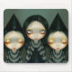 Three big eyed witch sisters! Very cute with pointy hats, big staring eyes (or closed eyes), and stripey shirts. This is my own original acrylic painting.