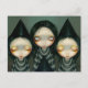 Three big eyed witch sisters! Very cute with pointy hats, big staring eyes (or closed eyes), and stripey shirts. This is my own original acrylic painting.