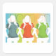 Three women standing wearing colourful tops. This design looks really effective on these Stickers
