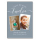 Reminisce and have some fun with your wedding reception table numbers - These elegant simple table numbers give you the option to include a photograph of the the bride and groom at the same age as the table number, the bride and grooms name/s and the date of their wedding. The background colour is dusty blue with white text, but these can be changed to any colour to suit your wedding.