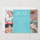 Turquoise graduation invitation with party information surrounded by four photo slots.