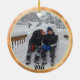 Both sides of this keepsake ornament feature a gold frame and customizable text for the year. Upload two of your favourite photos to personalize this keepsake ornament. This design makes a perfect gift for any age or gender!